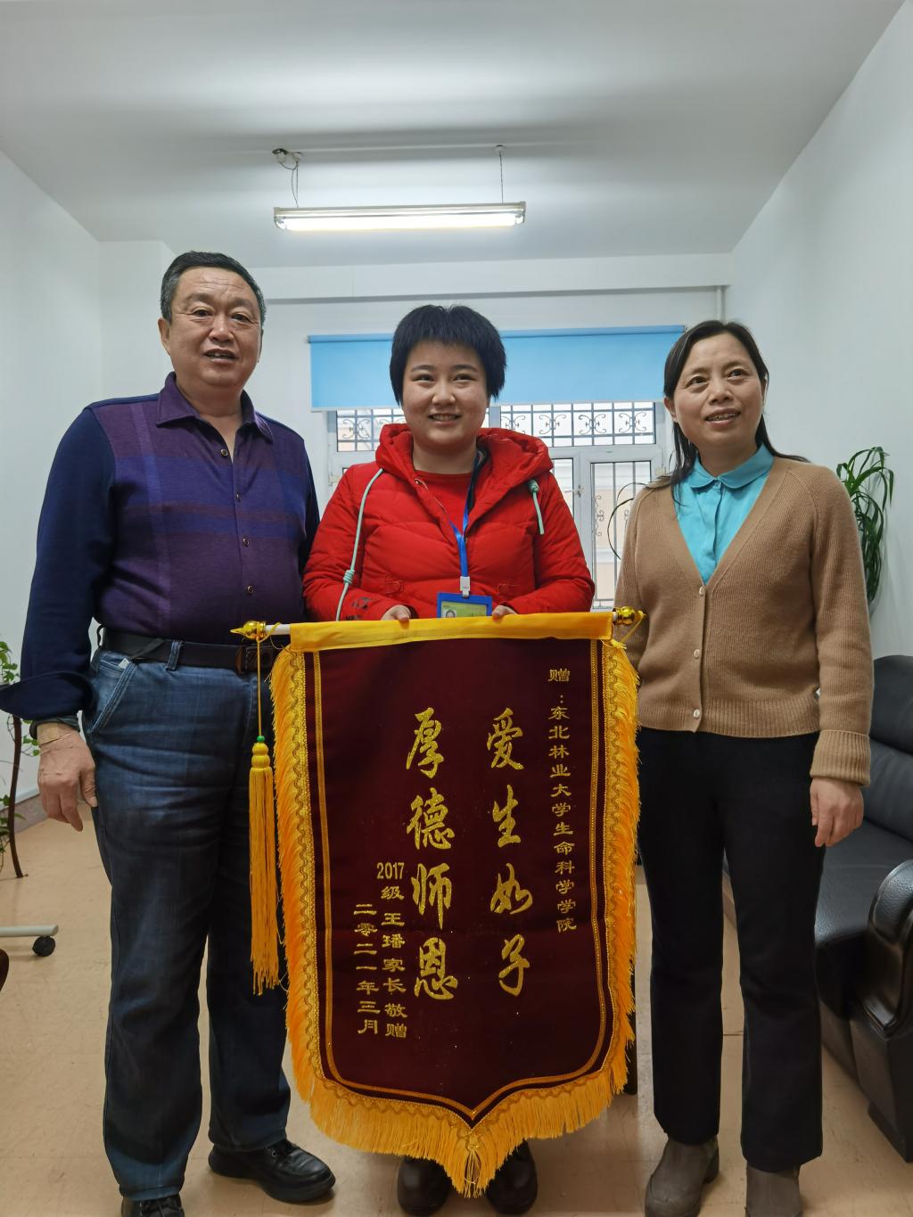 今年3月,已经康复的王璠再次返回了熟悉亲切的校园,她亲自将写满“爱生如子,厚德师恩”的锦旗和一封感谢信送到了学院领导的手里。“真的非常感谢学院领导和老师们的关心,他们的爱心让我的家人还了欠亲戚的外债,虽然我之前生病,但是去年的这个春节我们全家过的很幸福、很温暖。此生学在东林我很开心,东林这样的师恩我终身难忘。”